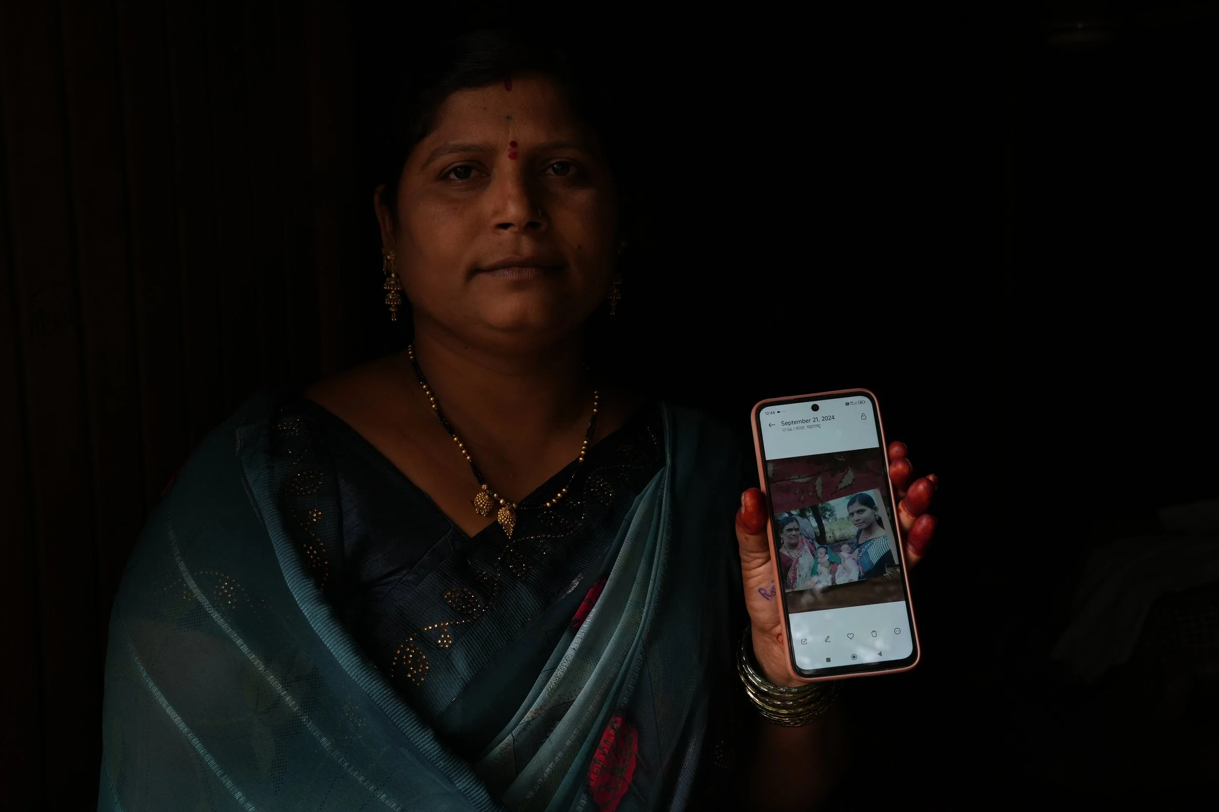 Rajushri Vaudiv Gite shows a photo of her twin daughters, who died as newborns. Her uterus was removed the day they were born — when she was just 18 — leaving her unable to conceive again. Photo: Suhail Bhat for More to Her Story