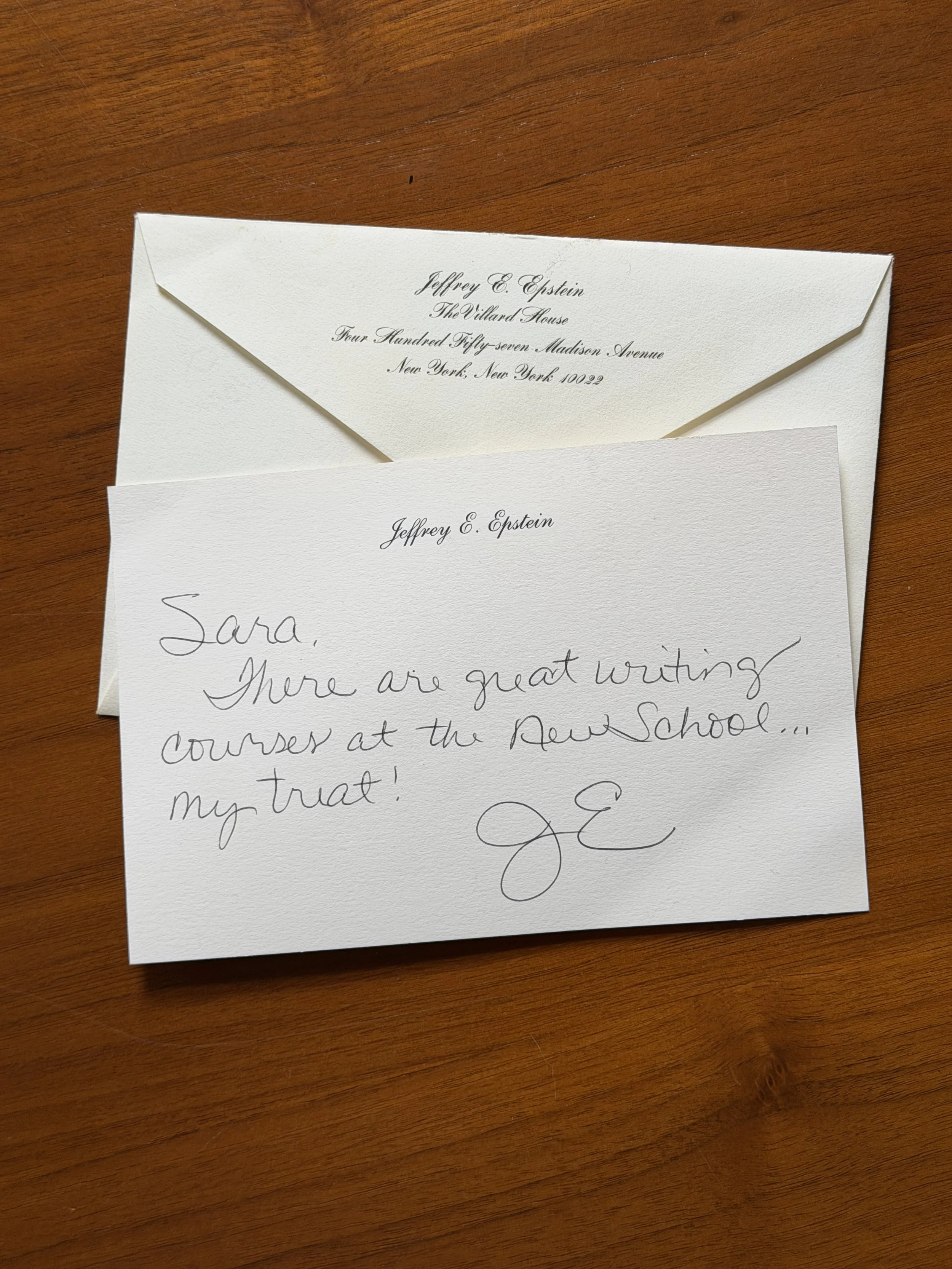 I don’t remember much about how I got there. But I do know that an older model had invited me to meet “her friend Jeffery.” I know that I was in Florida for a modeling shoot, sent by my agency NEXT Model Management. And I know that my agency — and not the older model — had the home address Epstein used to send me a handwritten letter after our meeting, inviting me to take a writing class at The New School. “My treat,” he wrote. He signed it “J.E.”