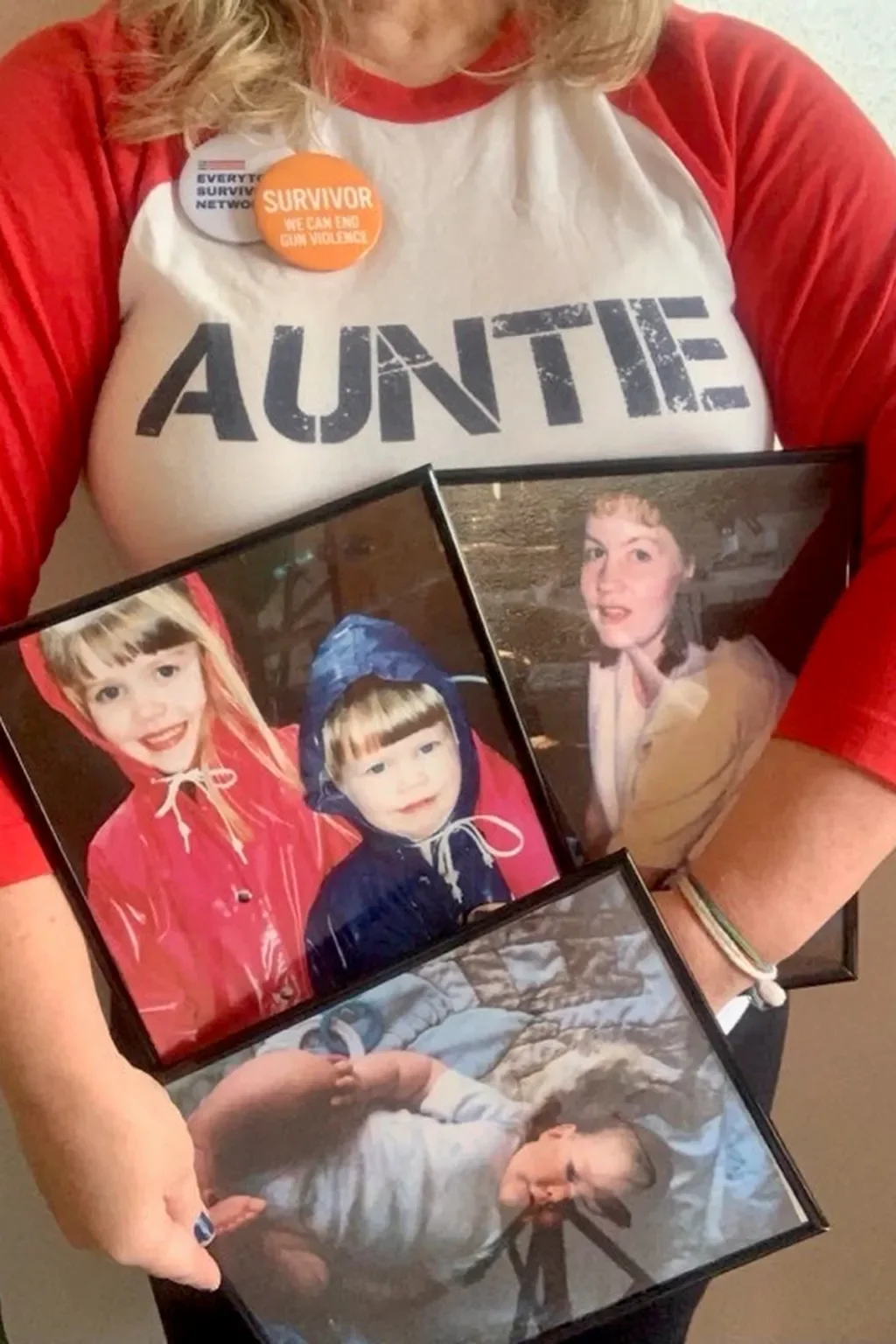 Pictured Right: Doreen Dodgen-Magee holds photos of her family who all lost their lives to intimate partner gun violence. (Courtesy Doreen Dodgen-Magee)
