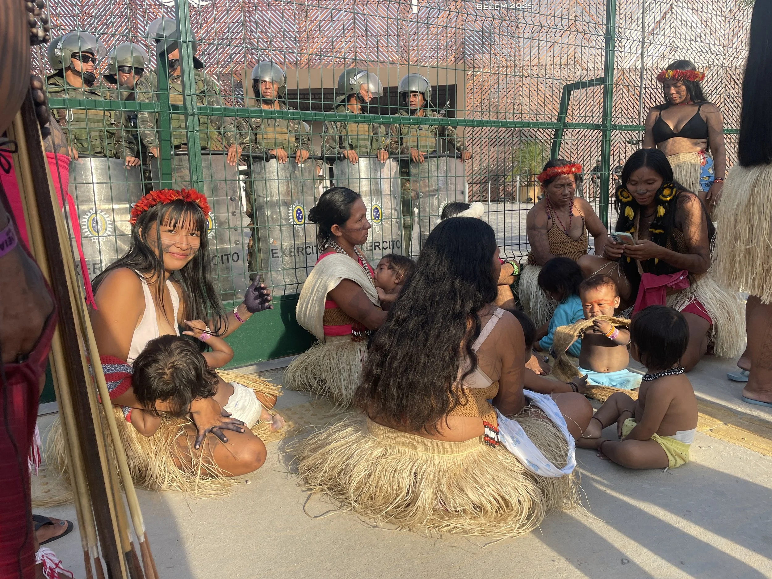 Mundukuru women protesting outside COP venue, by Catherine Ellis for More to Her Story