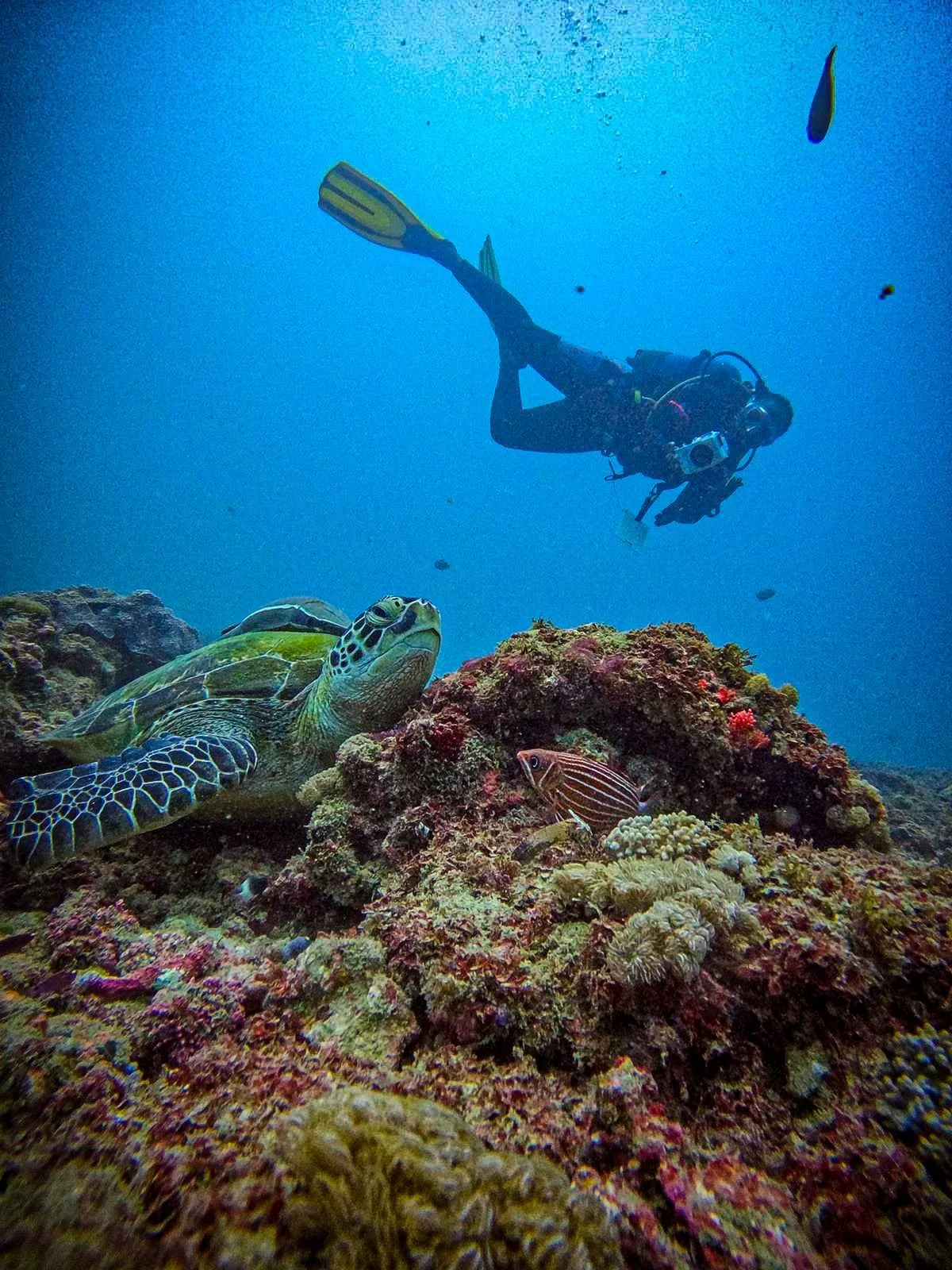 “When I dive, I record everything I can about turtles, its species, behavior, whether it’s swimming, resting, foraging, or even at a cleaning station,” she said. “Turtles are naturally shy, so patience is key to photographing them.”