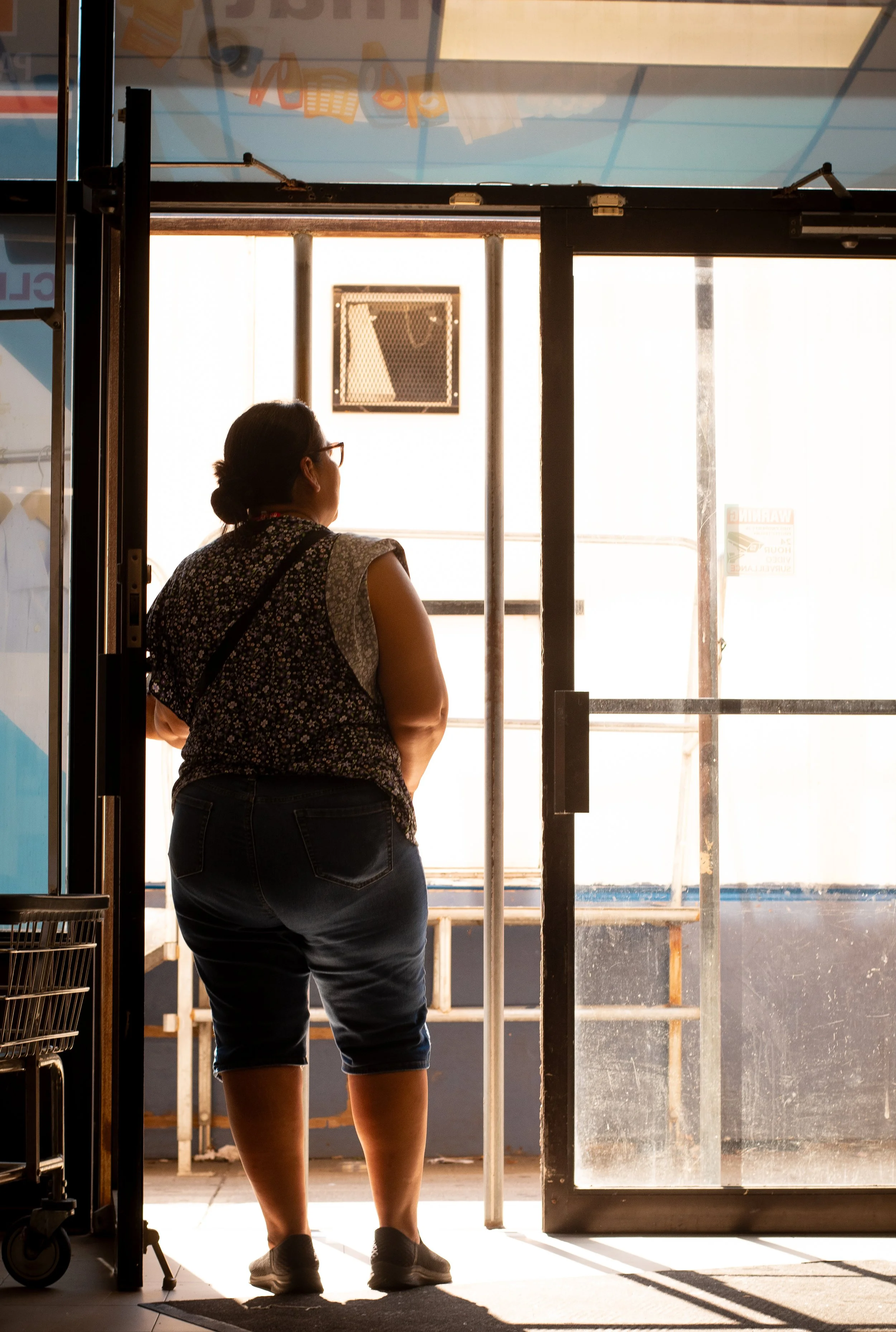 Beatriz Ramirez stands at the entrance to a laundromat in Jamaica, NY, on July 9, 2025. / Kelly Kimball for More to Her Story