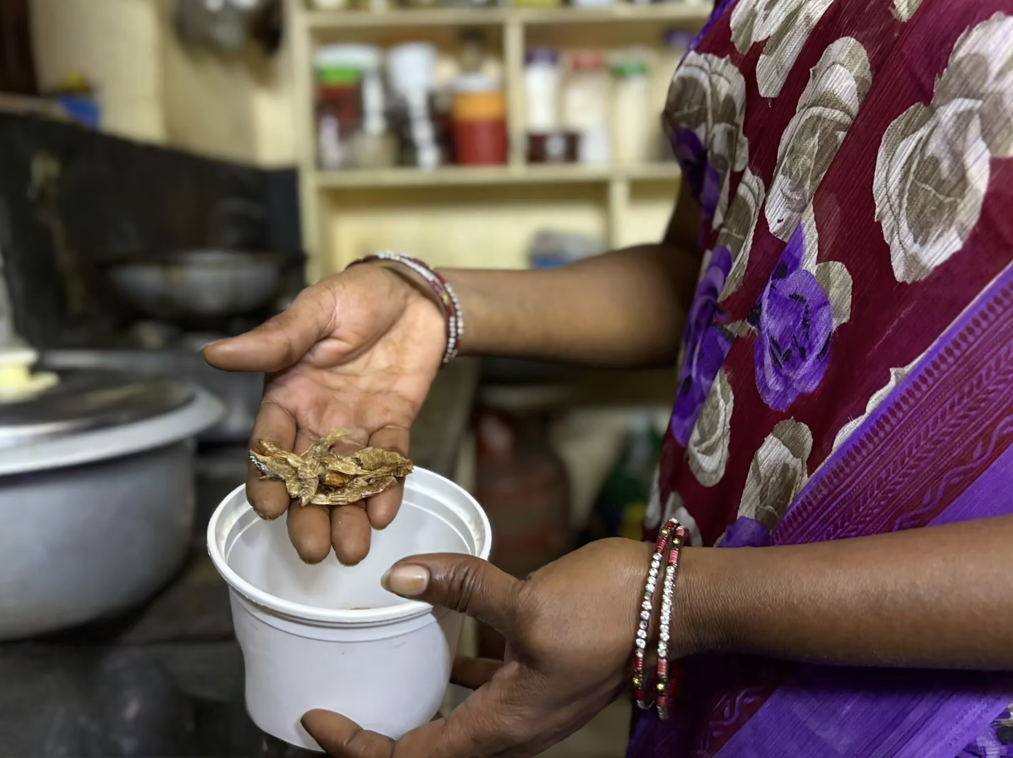 On a Sunday, Durga prepares a shrimp meal for her family. (Bhaskar Basava/BehanBox)